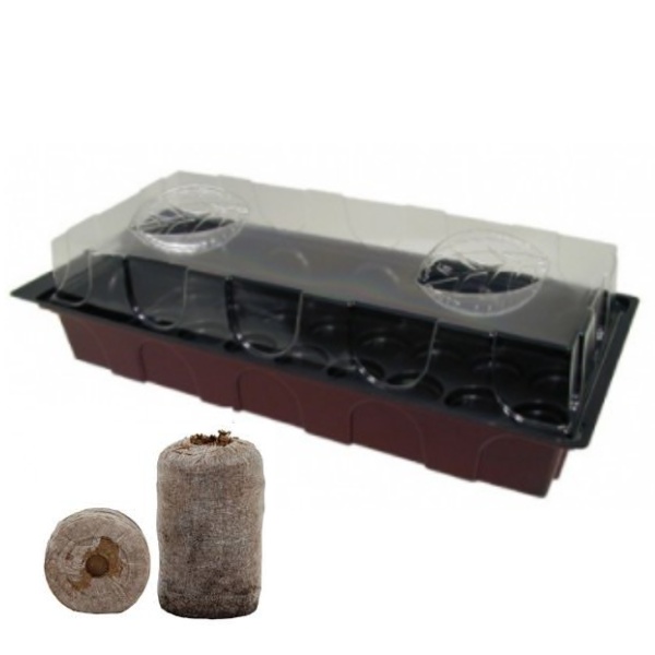 Perfektné hoby obdĺžnikové parenisko na okno spolu s 24 ks Jiffy tabletami na výsev semien. Len zalejte vodou, tablety zväčšia objem a môžte vysievať.