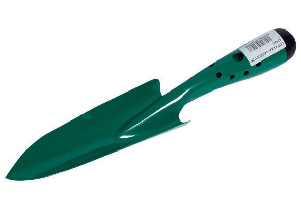 Lopatka na sadenie lisovaná z oceľového plechu. Tvarovaná rukoväť je ukončená PP zátkou. Povrchová úprava práškovou farbou. Hmotnosť 190 g.