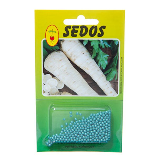 Obaľované osivo petržlenu koreňového, kalibrácia 2,5-3 mm. Je určené na pestovanie petržlenu koreňového z priameho výsevu. Umožňuje presný výsev ručný aj sejačkami, čím výrazne znižuje potrebu osiva a vylučuje jednotenie porastu.