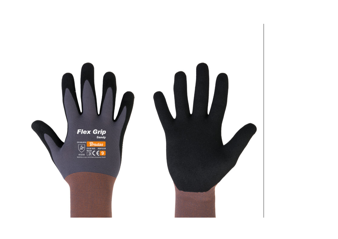 Rukavice z pleteného nylonu s prídavkom spandexu – steh 15. Prsty potiahnuté pieskovým nitrilom Ideálne pre presnú ručnú prácu Vysoká odolnosť proti oderu a roztrhnutiu.